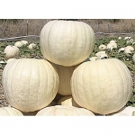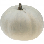 A white big pumpkin with a smooth skin and nice colouring; slightly ribbed.