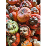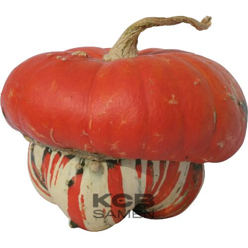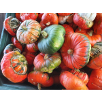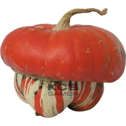 La plus belle sorte colorée du choix de Turban. Introduite aux USA au début du 19ème siècle, il arrive souvent que les fruits sèchent comme les calebasses. Cette sorte est comestible mais est également très appréciée pour la décoration.