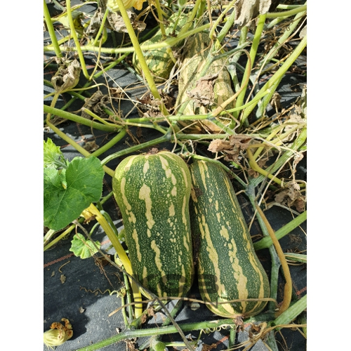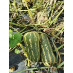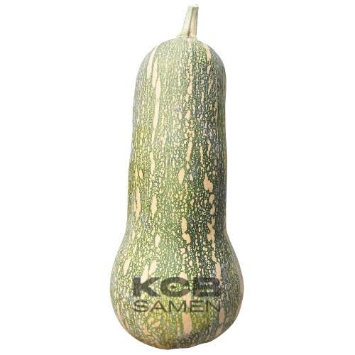 Fruit: vert, tacheté, en forme de poire allongée. Taille (L): 25-30 cm; Chair: très ferme, croquante et pas trop douce, orange foncée, de qualité exceptionnelle;