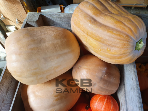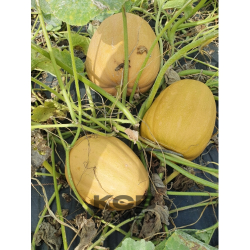 Fruis: beige, rond, légèrement allongé; Taille (HxL): 25 x 50 cm; Chair: orange foncé, douce;