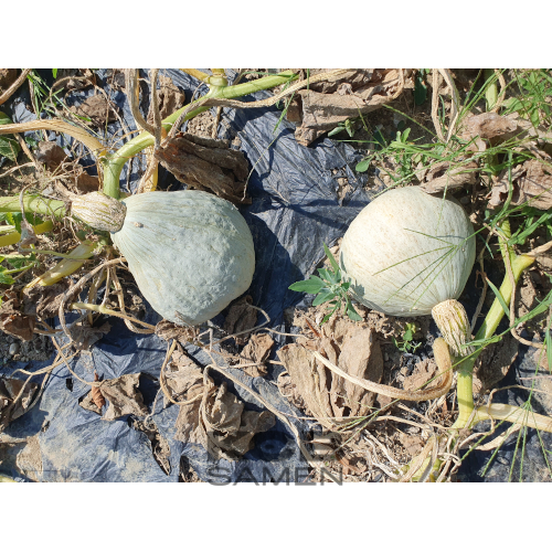 Forme du fruit: de forme variable, quelque peu étirés à chaques bouts; Taille (HxL): 16 x 20 cm; Chair: jaune foncé, excellent arôme noiseté;