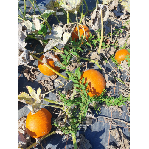 Fruits: uniformes, quasi ronds, légèrement allongés; Taille (DxH): 22 - 20 cm; Chair: jaune foncé, fine, bonne qualité; Chair: jaune foncé;