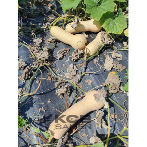 Grande Butternut très uniforme, robuste et surtout avec un cou droit! La plante est vigoureuse, s'adapte et produit des fruits très uniforme. Comme elle n'est que peu coureuse, cette devrait être cultivée serrée avec 10'000-12'000 par hectare.