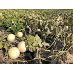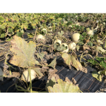 Forme du fruit: blanc, côtelé, aplati et rond; Taille (D): 40 cm; Chair: orange, épaisse;