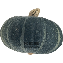 Forme du fruit: vert foncé, tachetés, rond et applati; Taille (DxH): 13 x 11 cm; Chair: jaune-orange;