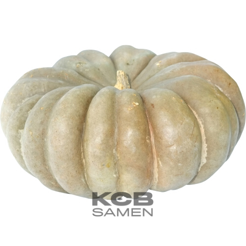 Fruchtform: gleichmässig deutlich gerippt, grau-grün, rund, oben und unten abgeflacht, Stielansatz deutlich vertieft; Fruchtgrösse: 16 - 20 cm x 10 - 13 cm; Fruchtfleisch: gelb, dick, feinkörnig, feste Konsistenz, süss, ausgezeichnete Qualität, feiner Kürbisgeschmack;