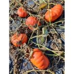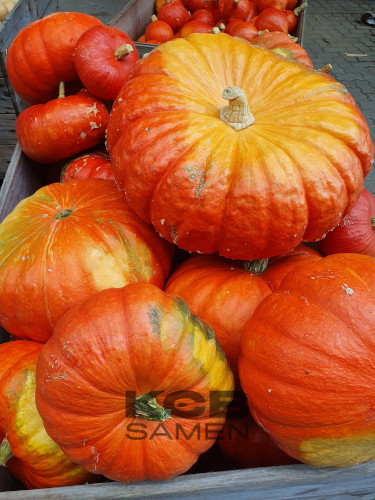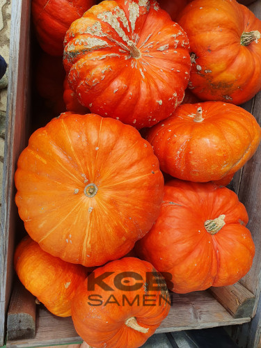 Fruchtform: rund, sehr breit, abgeflacht, teilweise eingedrückt; Fruchtgrösse (DxL): 20 - 50 cm x 15 - 20 cm; Fruchtfleisch: gelb-orange, faserig, mittlere Qualität;