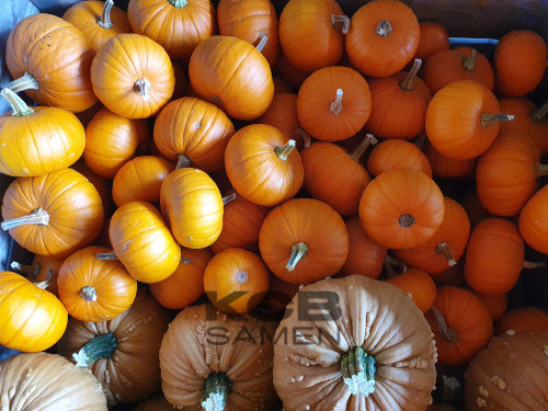 Ertragreicher, nacktsamiger mini Pumpkin mit uniformen leicht flachgedruckten Früchten.