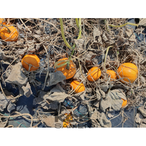 Dunkelorange, schwach gerippte Früchte. Vergleichbar mit Jack be little, Früchte jedoch etwas grösser, weniger gerippt und ganz ohne Schultern.