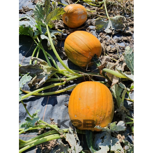 Fruchtform: uniform, orange, feine Rippen, hochrund, starker Stiel; Fruchtgrösse (DxH): 18 - 20 x 25 cm; Fruchtfleisch: hellorange, dick, Qualität durchschnittlich;
