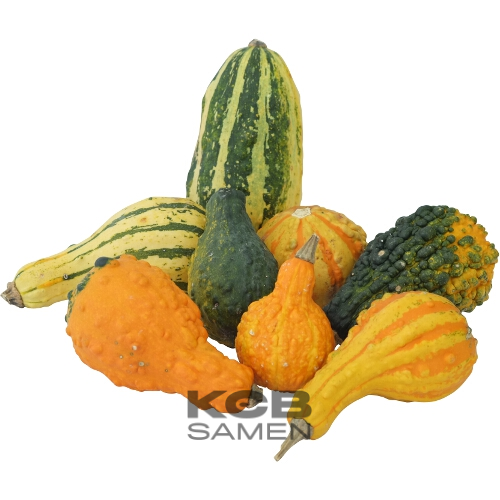Sehr ausgewogene Mischung in Farben und Formen. Etwas unterschiedlichere Formen als die Ultra gewarzten Zierkürbisse.