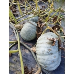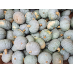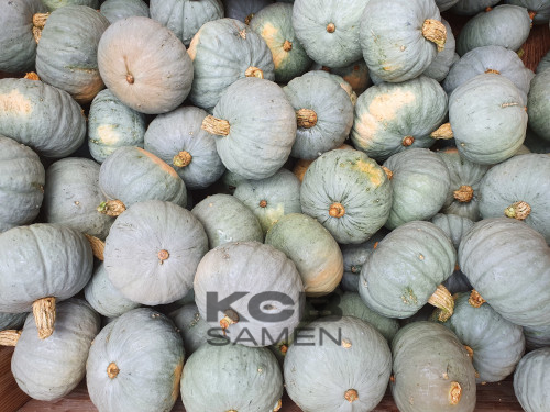 Fruchtform: grün-grau, etwas flachrund; Fruchtgrösse (DxH): 20 x 15 cm; Fruchtfleisch: gelb-orange, dick, feinkörnig;