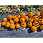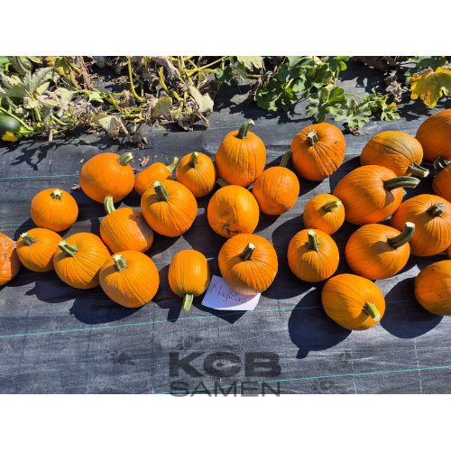 Fruchtform: rund, etwas abgeflacht, leuchtend; Fruchtgrösse (D): 35 cm; Fruchtfleisch: orange;