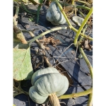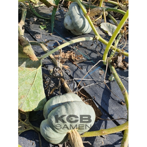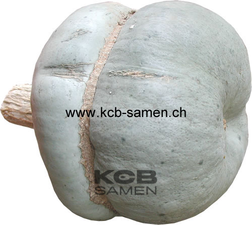 Fruchtform: turbanförmig, mit einem grossen und breiten Blütenansatz, grau einfarbig; Fruchtgrösse (DxH): 15 x 20 cm; Fruchtfleisch: fast dunkelorange, dick, zart und süss, gute Qualität;