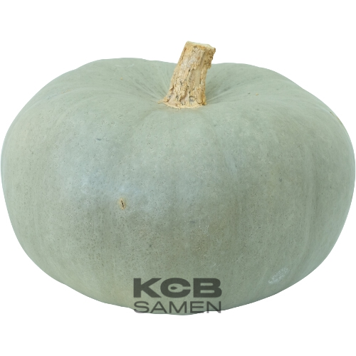 Fruchtform: kleine Samenhöhle, flachrund, kompakt, deutlich abgeflacht, leicht vertiefter Stielansatz, gerippt, grau; Fruchtgrösse (DxH): 30 x 16 cm; Fruchtfleisch: dunkelorange, dick, zart süss, reich an Karotin, gute Qualität;