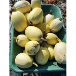 Fruchtform: zylindrisch; Fruchtgrösse (HxL): 18 x 12 cm; Fruchtfleisch: hellgelb, lange, feine spaghetti-ähnliche Fasern;