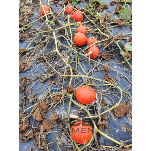 Grosser Hokkaidotyp, vergleichbar mit Potimarron Francaise, kann ebenfalls mit der Schale gegessen werden. Gute Fleischqualität, schön leuchtendes rotes Orange, uniform und unigross.