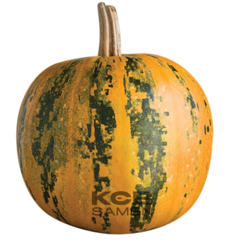 Fruchtform: rund, einheitlich, gesund; Fruchtgrösse; D: 23cm; Nacktsamig, Samen ideal zum rösten und Essen/Ölproduktion; Fruchtfleisch: hellorange, dick, faserig, schwammig, minderwertige Qualität;