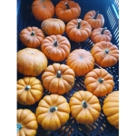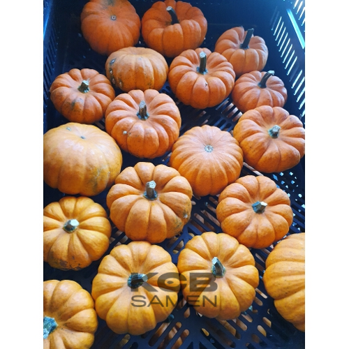 Fruchtform: orange, flachrund, vertiefter Stiel; Fruchtgrösse (DxH): 8 - 12 cm x 3 - 5 cm; Fruchtfleisch: orange, 1 cm dick, süss, knackig, feines Kürbis- und Marroni-Aroma, leicht mehlig;