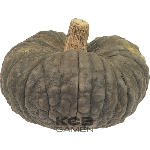Fruchtform: grüne Früchte mit starken Runzeln, rund, abgeflacht, in der Breite unterschiedlich grosser Spiegel; Fruchtgrösse (DxH): 20-35 x 15 cm; Fruchtfleisch: dunkelgelb bis orange, dick, besonders auf der Blütenseite, ausgezeichnete Qualität;