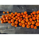 Fruchtform: flach, unten leicht spitz (leicht herzförmig); sehr einheitlich (kleiner und flacher als Amoro); Fruchtgrösse (HxL): 16x10 cm; Fruchtfleisch: orange, schwammig, nicht so kompakt, süsslich, die Früchte können mit der Schale verarbeitet werden;