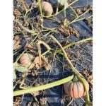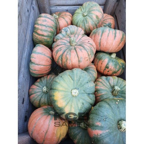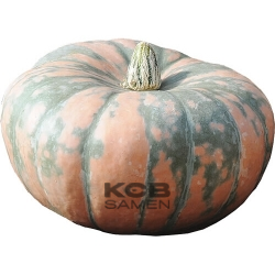 Fruchtform: flachrund, glatt und orange bis rosa mit blau-grauen Flecken, sehr oberflächlich gerippt; Fruchtfleisch: dunkelgelb, dicht, trocken, süss, von sehr guter Qualität;