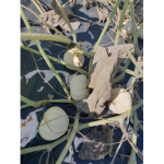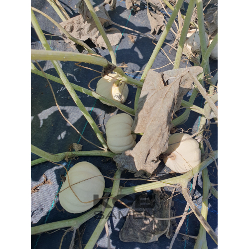 Fruchtform: teils etwas instabil in der Form, weiss, flachrund; Fruchtgrösse (DxH): 5 - 8 cm x 3 - 4 cm; Fruchtfleisch: orange, 1 cm dick, süss, knackig, feines Nuss- und Marroni-Aroma, leicht mehlig;
