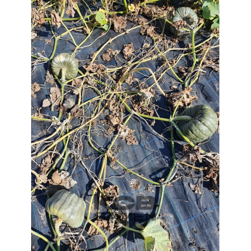 Fruit: mostly flatround, slightly hollowed stem base; Size (DxH): 18 - 23 cm x 12 - 15cm, Flesh: yellow, at the stemside and the periphery very thick, solid, finely granulated, sweet, good quality, decent pumpkin taste;
