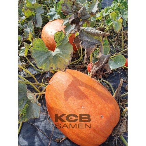 A bright red giant of the type of Atlantic Giant. The big, cylinder-shaped fruits are very suitable for decoration. Nevertheless, the flesh can be used for soups. The fruits have an average weight of 20 - 30 kg schwer, However, under good conditions the fruits can weigh up to 70kg.