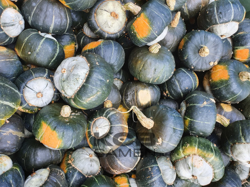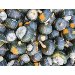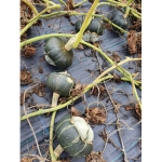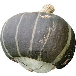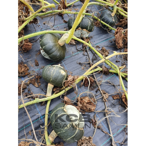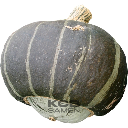 Fruits: dark green, speckled, flatround; Size (DxH): 20 x 15 cm; Flesh: dark orange;